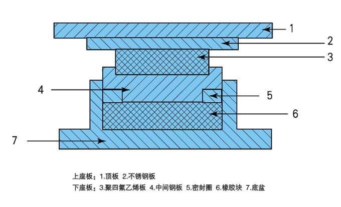 盆式橡膠支座的基本結構可分為兩部分:上座板與下座板